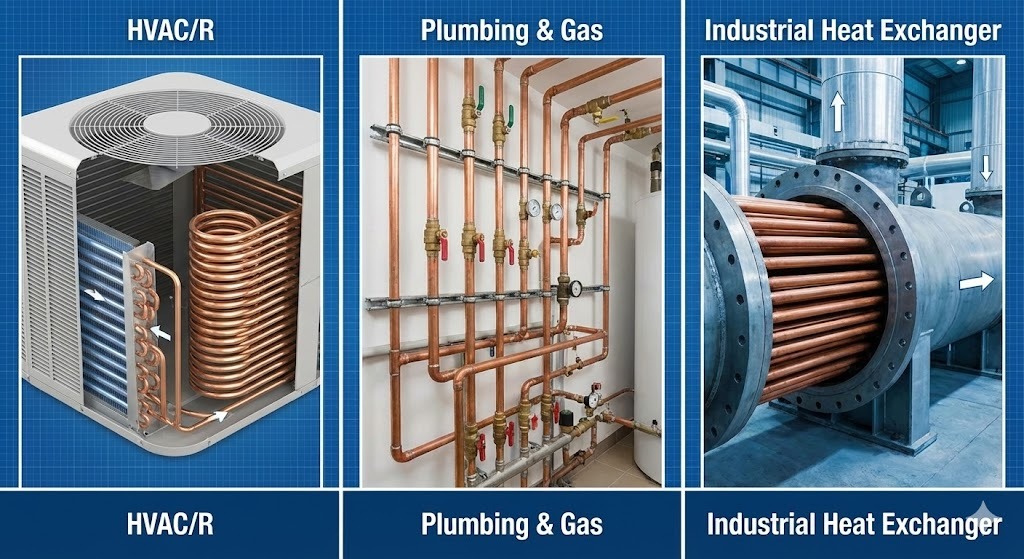 Les tubes en cuivre TP2 constituent le « système circulatoire » des infrastructures modernes. En raison de leur combinaison unique de résistance à la corrosion et d’efficacité thermique, ils sont indispensables dans :